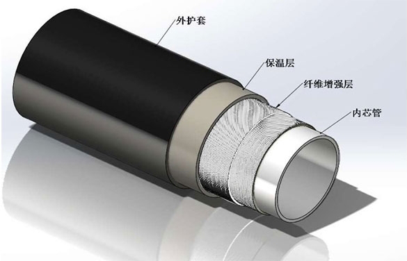 管體由內(nèi)到外分別為:內(nèi)芯管、纖維(滌綸絲)增強、隔熱粘合層、外保護層
